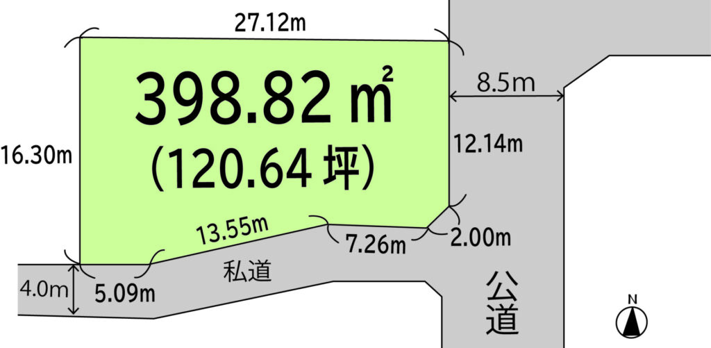 土地面積(実測) 398.82㎡(120.64坪)