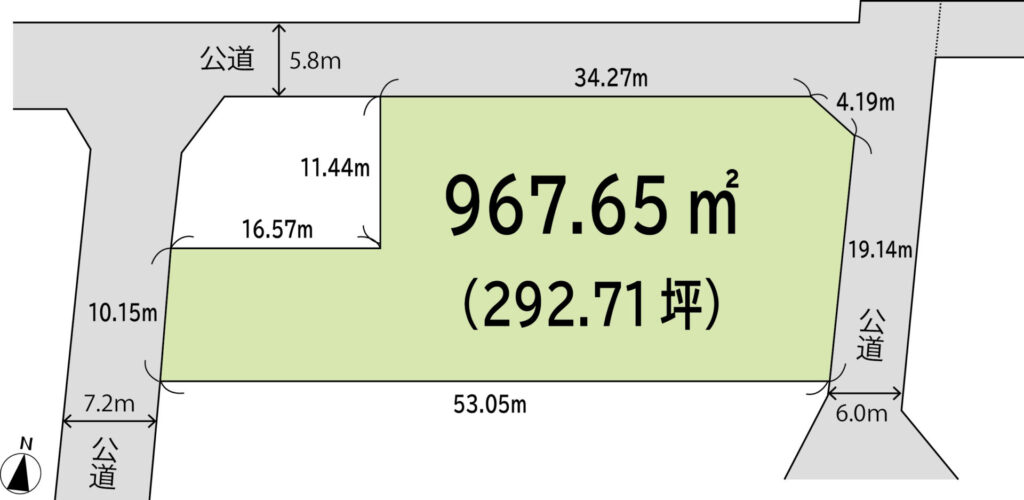 接道 北側5.8m公道、間口34.2m
