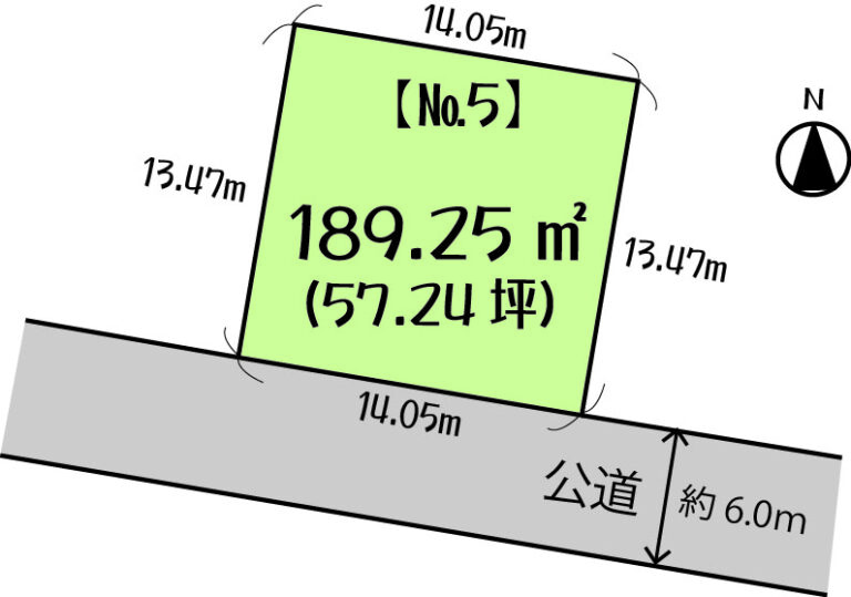 土地面積(公簿) No.5 189.25㎡(57.24坪)